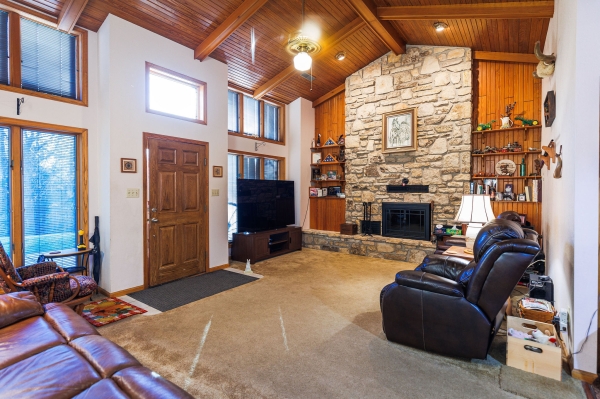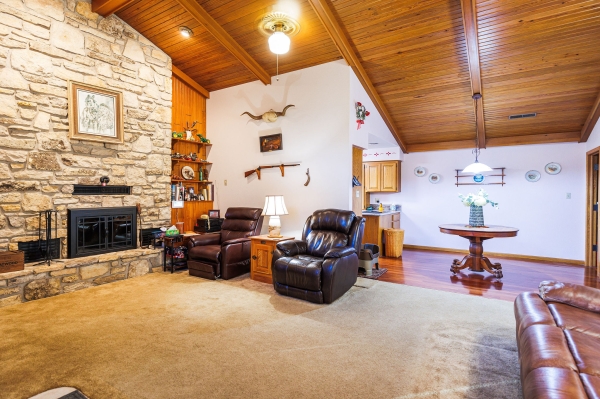 Welcome to this wonderfully maintained property sitting just outside of town on 9 acres. This parcel has a nice mix of woods and pasture. The asphalt driveway will bring you past the fenced in pasture and up to the home. The house is a berm construction set into the hill with a rustic cedar siding exterior. Inside this 3 bed 2 bath home you'll find vaulted ceilings and an impressive stone fireplace. Notice the updated granite countertops in the kitchen, onyx walk-in shower, and traditional clawfoot tub. The exterior features a large 40 x 24 garage and a barn for keeping horses and storing equipment. There are so many essential upgrades including: septic system, all new 50 year roofs with impact resistant shingles, newly sealed siding, exterior lighting...the list goes on! Schedule your showing today 2 of the bedrooms are non-conforming due to skylights not being egress.Jim Clancy 785 370-1722