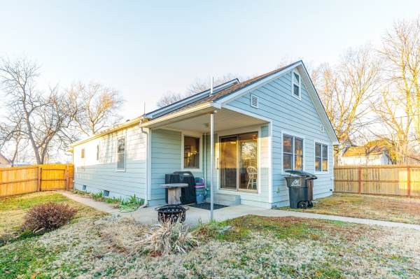 | Covered Porch, Patio, Wood Privacy Fence |